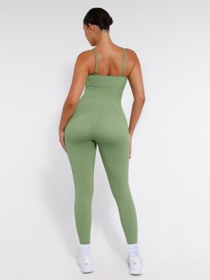 Seamless Bust Support Waist Cinching Tummy Control Jumpsuit with Removable Cups